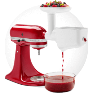 Collegare il passaverdure alla planetaria. Posizionare un'ampia ciotola sotto il passaverdure per raccogliere la passata di pomodoro e una ciotola più piccola in fondo al passaverdure per raccogliere gli scarti.